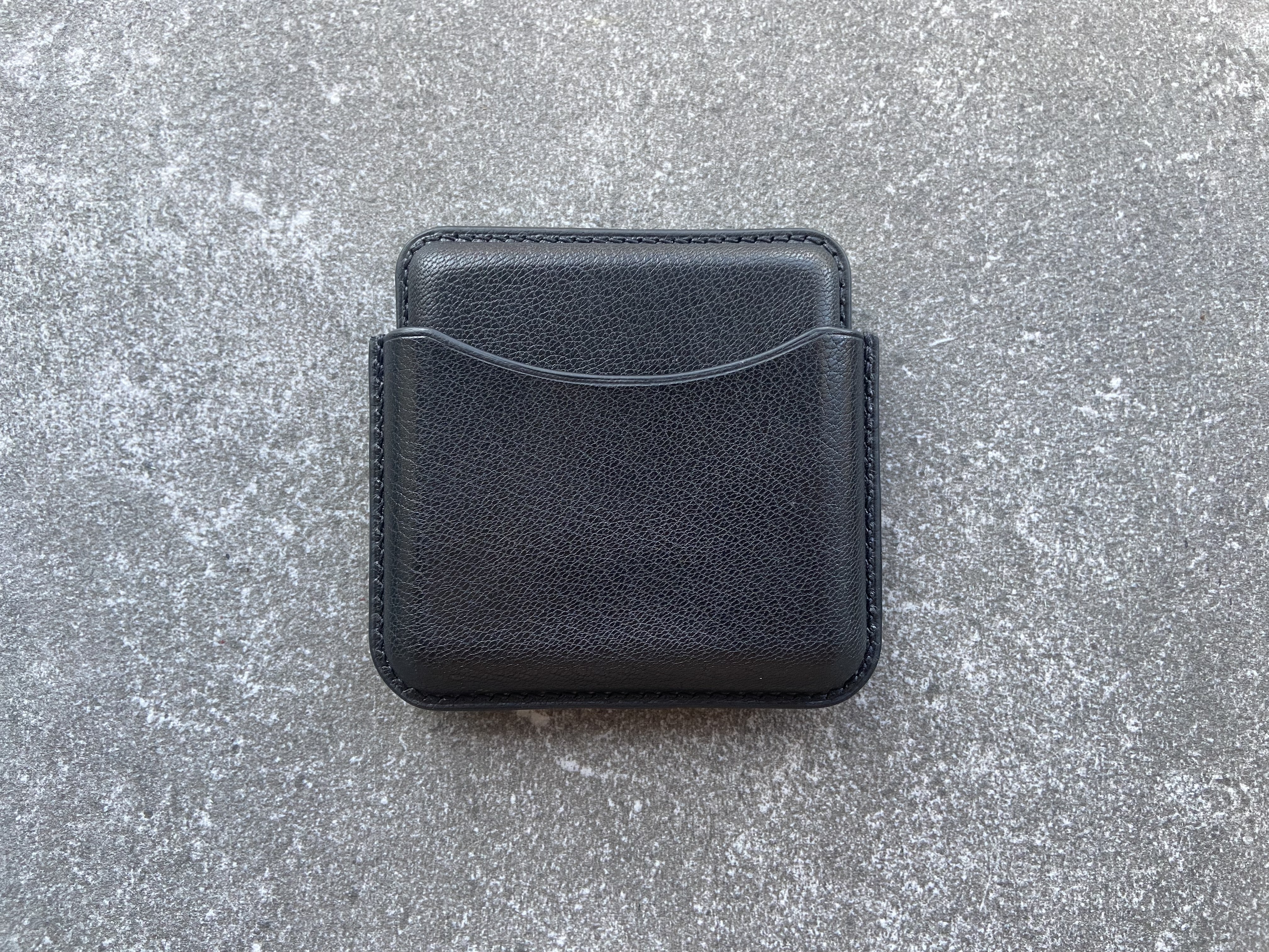 The exterior is crafted from black Chevreau leather with a natural grain that gives a discreet and elegant look. The case is carefully assembled by hand, with clean edges and a precise fit of the parts so that it opens and closes smoothly and keeps its shape in daily use.
